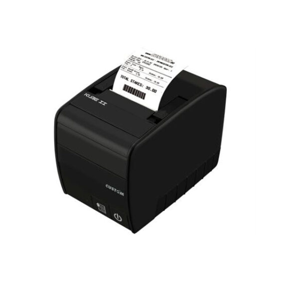 SKU: 274-70-CUKUBEIIUSB Brand: CUSTOMKUBE II, receipt thermal printer Thanks to its compact, appealing and robust design, and the possibility to install it both vertically and horizontally, it is the ideal solution for Points of Sale. KUBE II ispowerful and extremely fast: it prints on 80/82.5mm tickets providing extraordinary printing quality and the possibility to move and position the characters and graphics in any direction. The large paper roll (90mm diameter) assures High printing capacity. KUBE II features unique performance levels, sturdiness and reliability: it isequipped with long-life and high quality printing head (200 km of printed paper), and with the new cutter for automatic receipt cutting, to provide the greatest efficiency for over 2 million cuts. KUBE II prints high resolution graphic coupons and logos. As accessories, we have available the coloured sides (red, silver and beige). KUBE II comes equipped with USB, Serial RS232 or Ethernet interface, with drawer control drivers.